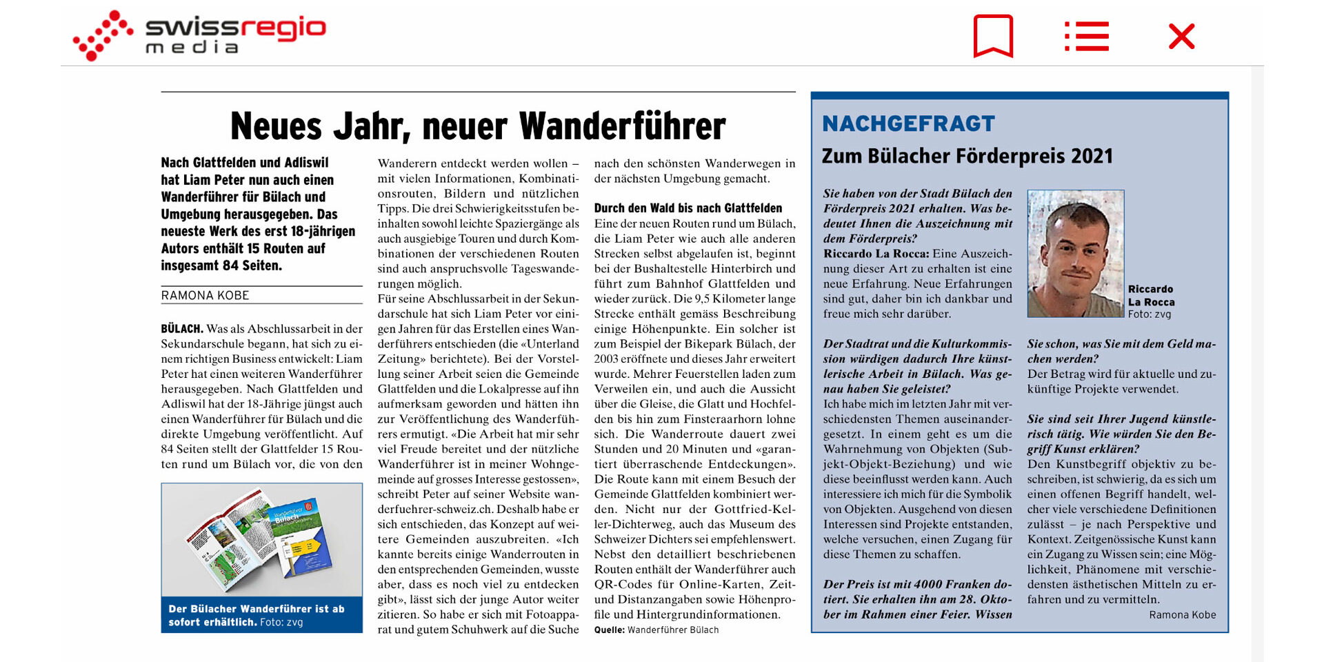 Unterland Zeitung Bericht, Wanderführer Schweiz